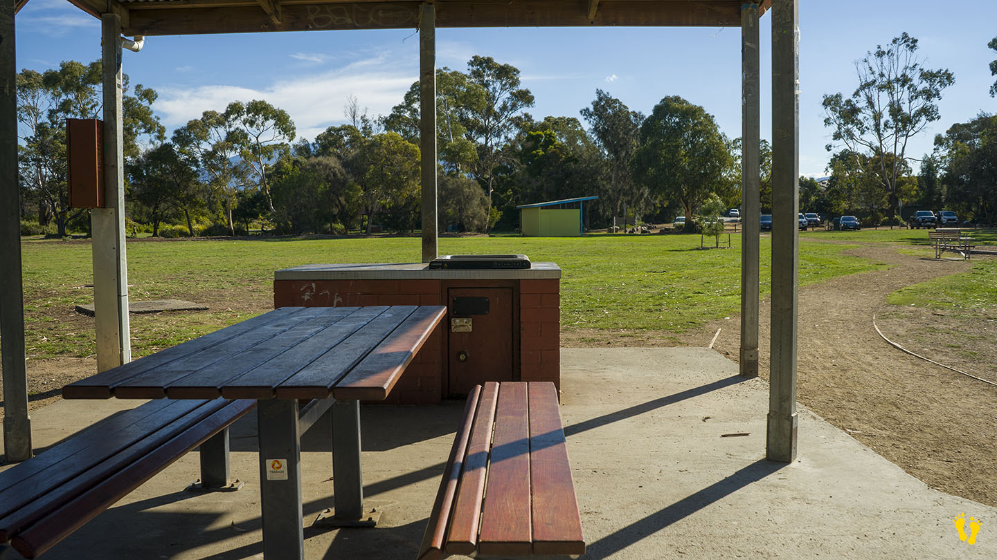 There are 4 covered BBQ areas spread wide apart, great for privacy – a nice idea and great for BBQ’s and activities such as cricket, soccer, football, frisbees, etc. Toilets are not far away, and access to Howrah Beach is close.