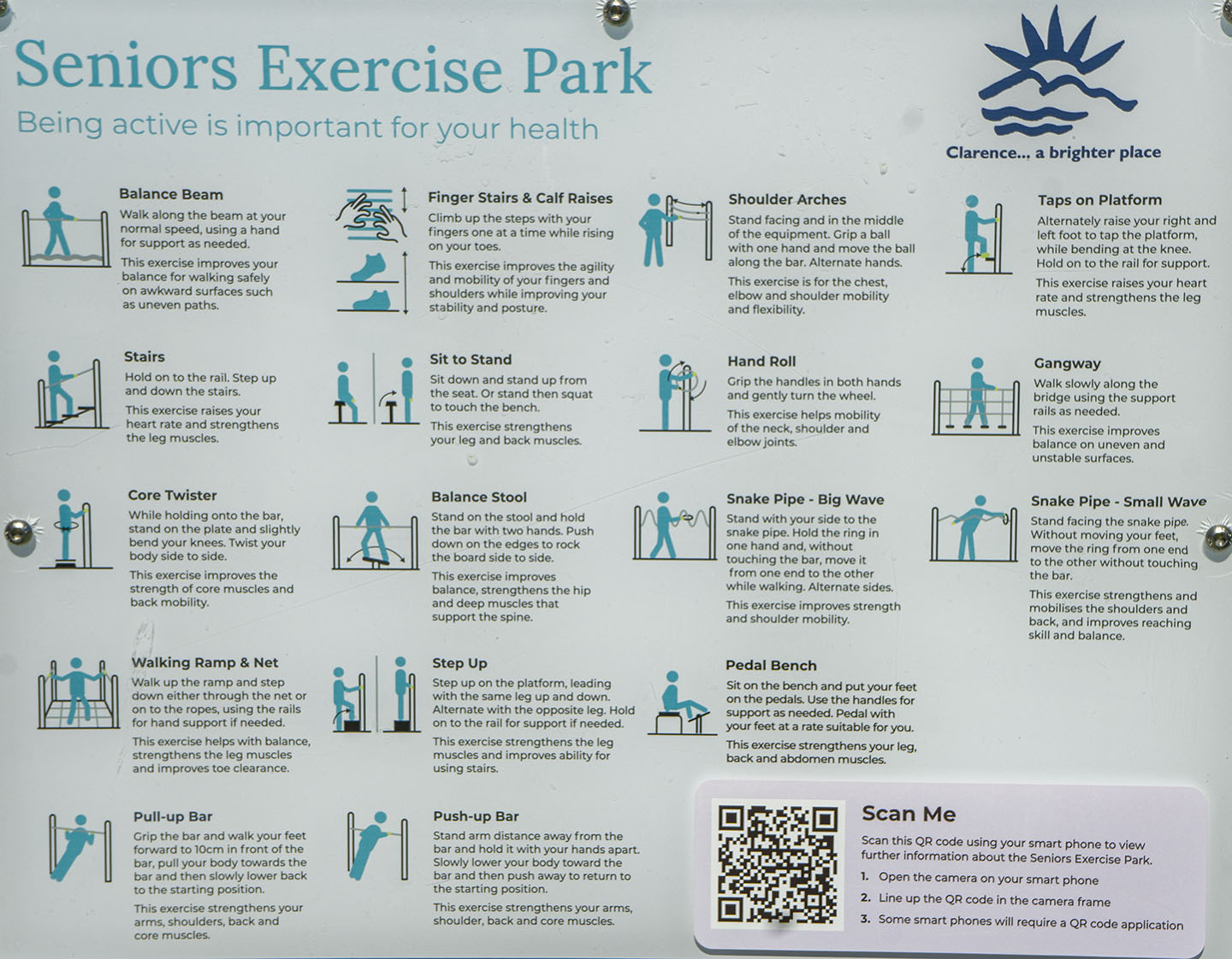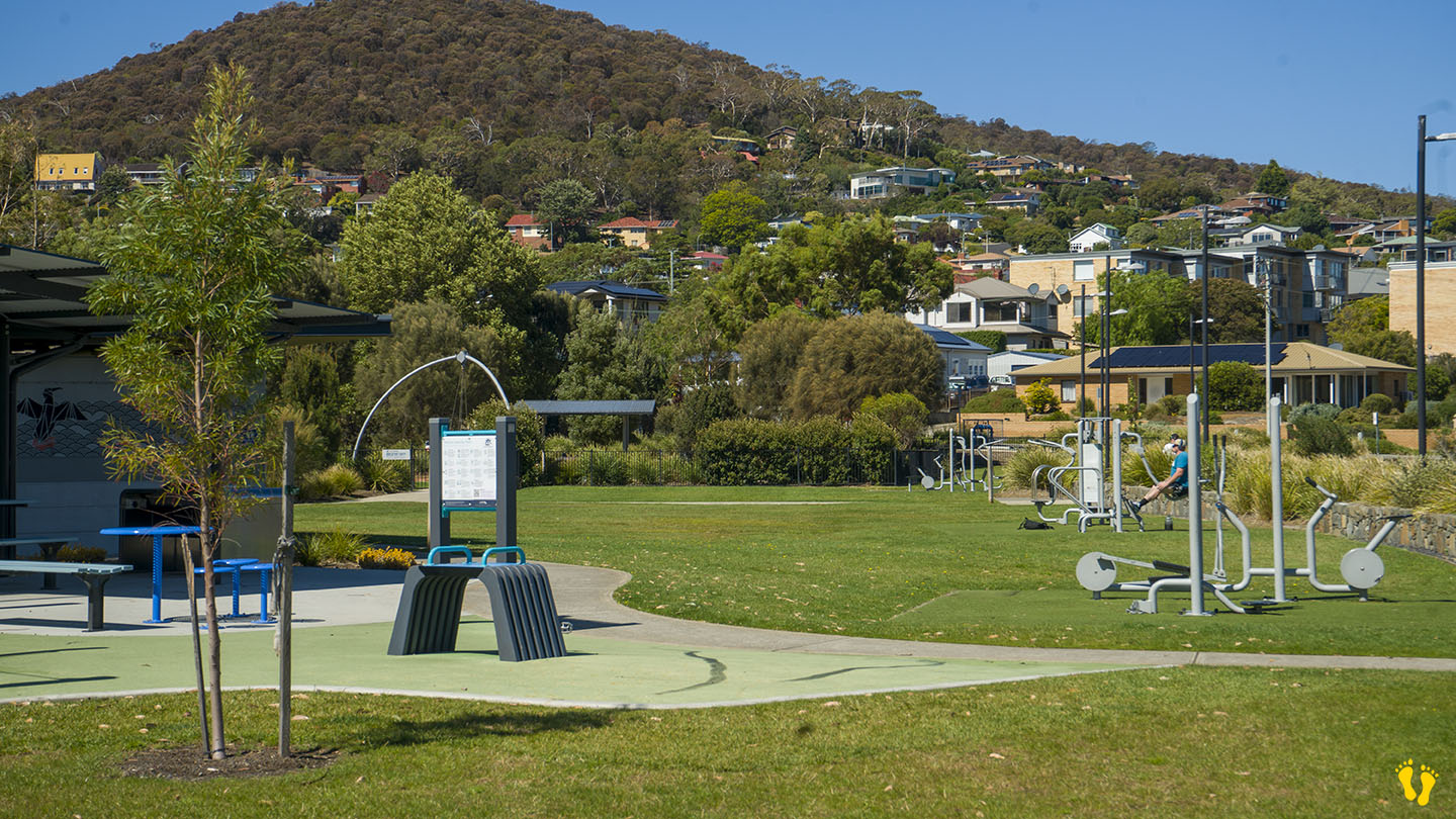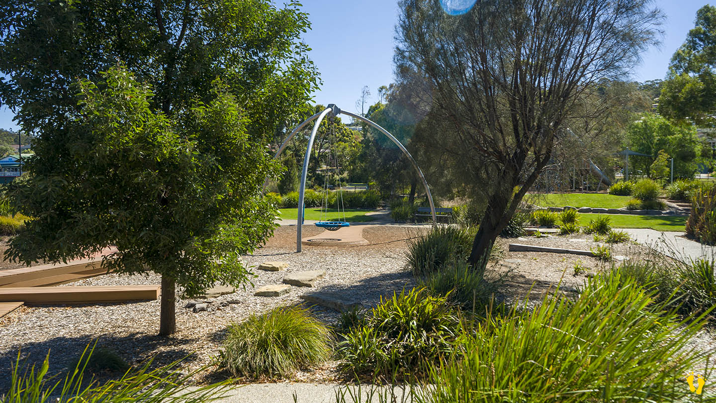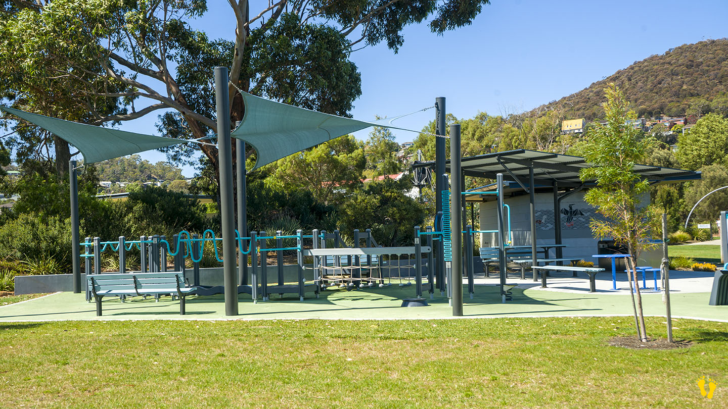 There is an outdoor gym plus a seniors exercise area, wide accessible paths and a dedicated accessible swing.